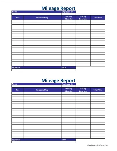 Form Description: This form will help you track your or your employees' mileage for tax, budgeting and reimbursement purposes. Includes space for employee and individual trip information. The section for mileage itself includes columns for the date of the trip, the starting and ending address and odometer, and the total miles. This form is in two-per-page portrait format.