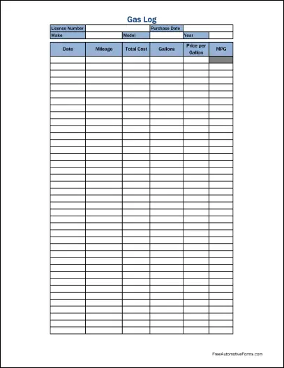 FreeAutomotiveForms' free "Basic Gas Log (Tall)" form is associated with the following keywords: Driving, Accounting, Free Log Form.