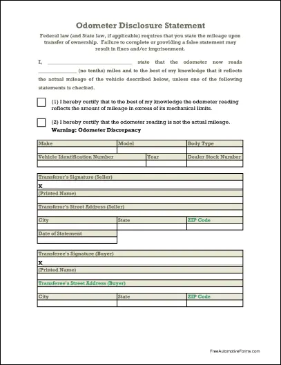 Odometer Disclosure Statement