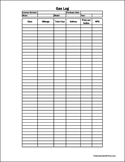 Form Description: Whether you have a single company car or a fleet of delivery trucks, you need to know how much you're spending on gas. Fuel efficiency and spending are easy to track with our gas log. The basic version includes vehicle information such as license number, purchase date, make, model and year, as well as an itemized transaction list. The list includes fields for the date, current mileage, amount spent, gallons purchased, price per gallon, and the MPG since the last fill up. In the Excel edition, the price per gallon and MPG fields are computed automatically. This version is formatted for easy duplication for your convenience. This form is in full-page portrait format.