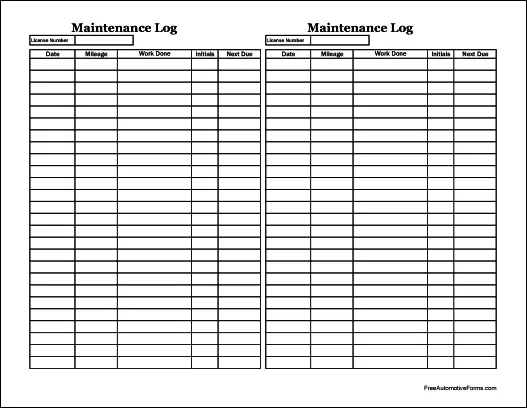 FreeAutomotiveForms' free "Easy-Copy Small Simple Automotive Maintenance Log (Tall)" form is associated with the following keywords: Vehicle Maintenance Log, Free Log Form, Equipment, Service Log.