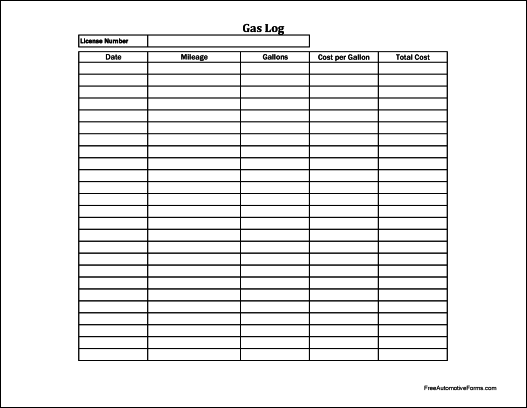 FreeAutomotiveForms' free "Easy-Copy Simple Gas Log (Wide)" form is associated with the following keywords: Driving, Accounting, Free Log Form.