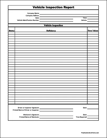FreeAutomotiveForms' free "Basic Vehicle Inspection Report" form is associated with the following keywords: automotive, vehicle, driver, inspection, report.