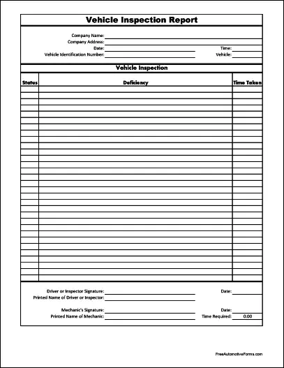 FreeAutomotiveForms' free "Vehicle Inspection Report with Total Time" form is associated with the following keywords: automotive, vehicle, inspection, total time, report.